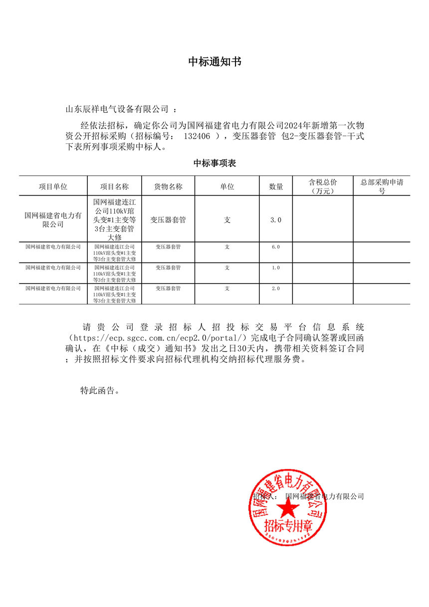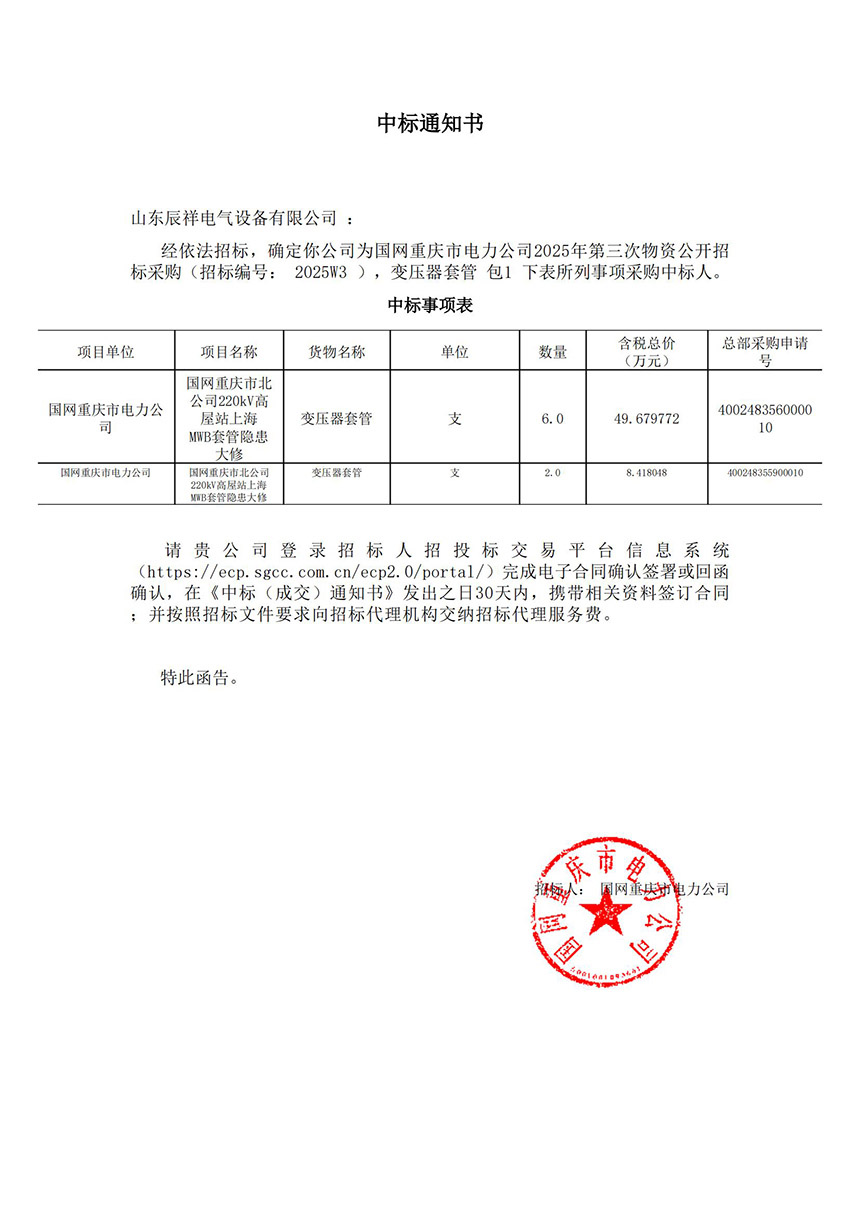 2024.12.18 變壓器套管中標(biāo)通知書(shū)